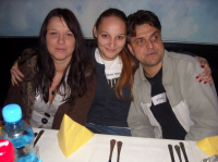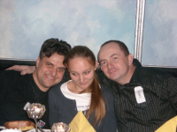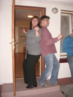Peterek, mam nadzieje ze synkowi szybko zniknie ta straszna czerwona plama z buzi. Dzieki, ze mimo tych nieprzyjemnych okolicznosci znalazles czas i zapal by sie pojawic, milo bylo Cie poznac. Chcialem podziekowac wszystkim uczestnikom, za wspaniala atmosfere, przednia zabawe, zespolowi Galaxy Hunter za ponad godzine zabojczego grania, koledze odpowiedzialemu za swiatla dzieki za kosmiczne oswietlenie, ktore ledwie sie miescilo w malutkiej sali Belissimy (czulem sie jak na koncercie Jarrea w Stoczni ;-), DJom, a przede wszystkim - Mariolce, ktora byla inicjatorka i organizatorka calego zlotu. Podziwiam Cie za taki debiut, nieporownywalny rozmachem i organizacja z moimi poczatkami - pierwszymi imprezami w pobliskich KonTikach, 7 lat temu. Tak jak napisalem - dla mnie najwieksza wartoscia byla mozliwosc spotkania sie ze starymi znajomymi (pozdrawiam wspol-podroznikow: Avenke, Anulke , Fenixa i Michala, dzieki Maciej 3345rpm za wzruszajace chwile i moje ukochane "Just A Story", Pavulon, Marek i Skup P. - za trening gardla ;-), poznaniem nowych, wczesniej wirtualnych osob. Milym, pozytywnym zakoczeniem byl dla mnie koncert. Prawde mowiac troche sie obawialem, jak bedzie wygladala zabawa przy muzyce space. Okazalo sie, ze nastroj stworzony przez dymy i lasery, ekipe taneczna od poczatku wspomagajaca Anete (Italohit? super tanczysz , przez Zbyszka wciskajacego na zywo klawisze - to wszystko wciagnelo cala sale do zabawy - parkiet byl pelny. Dzialo sie znacznie wiecej, ale poki co jestem zbyt zmeczony 3-dniowa impreza (bylo jeszcze after party do wczorajszego wieczora 8-o), by zebrac mysli. Jeszcze raz - wielkie podziekowania dla Was wszystkich, za tak liczne przybycie, nieraz z bardzo daleka. Z taka ekipa zabawa jest zawsze udana. Ale najwieksze podziekowania naleza sie szalonej Mariolce - ktora wpadla na pomysl imprezy i cala ja przygotowala. Dziekuje Mariolciu!
